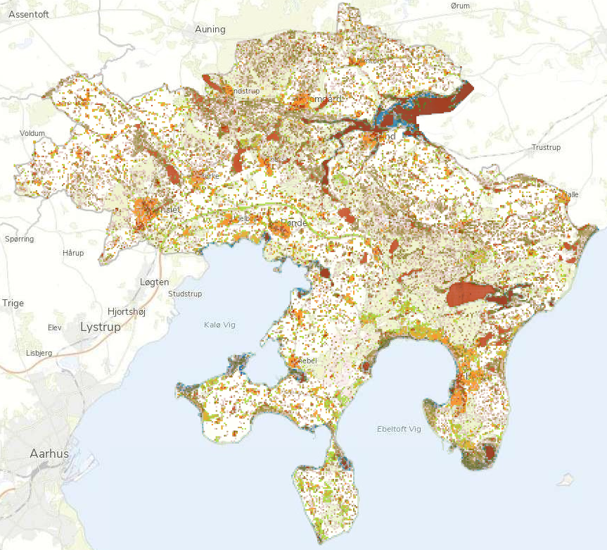 Figur 19: Samlet risikokort for oversvømmelse og værdier. Webkortet kan bruges af alle her