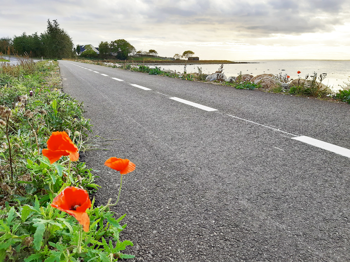 Foto fra den nyanlagte cykelsti til Vrinners langs Kalø Vig. Cykelstien vil kunne hæves gradvist over de næste 30-100 år, alt efter behovet for, at beskytte de bagvedliggende værdier for det stigende havvand.