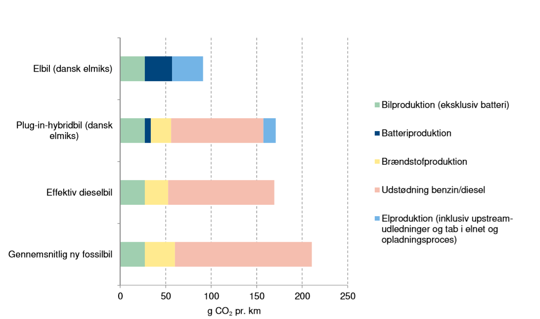 Figur 15: Global CO2-udledning pr. km over bilens levetid (Klimarådet 2018)