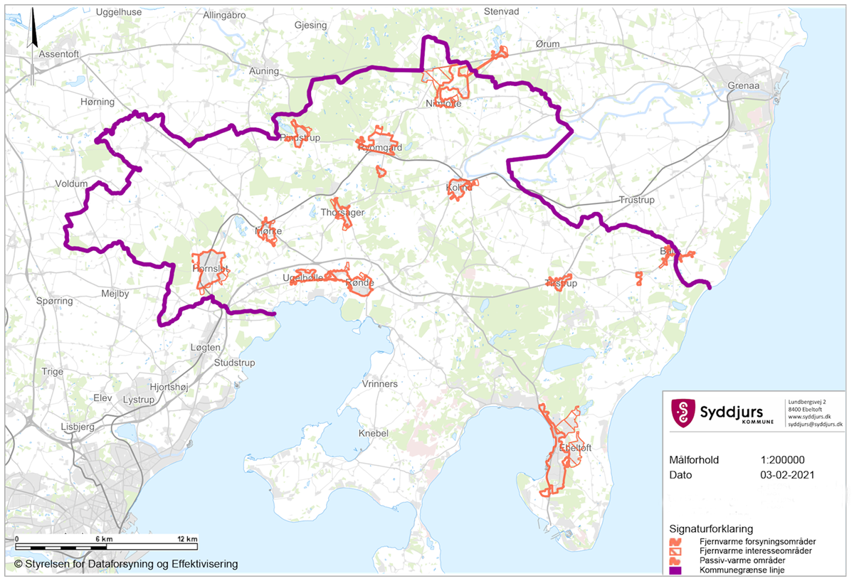 Figur 12: Kort over Fjernvarmeforsyningsområder 2021
